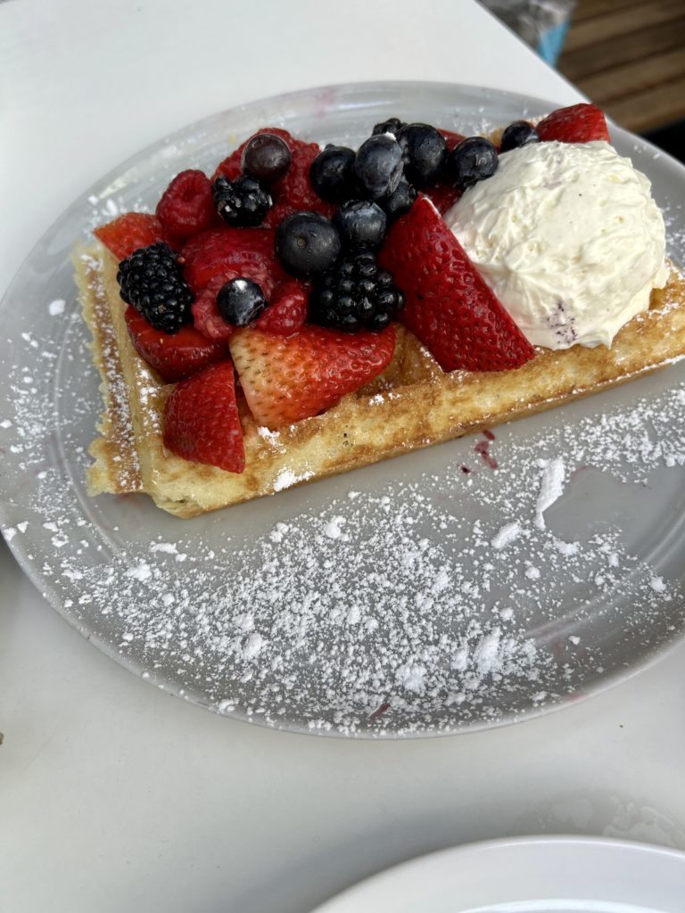 ワッフルももちろん上に乗ってるものが全ておいしかった。ブルーベリーひとつぶとってもみずみずしかった。