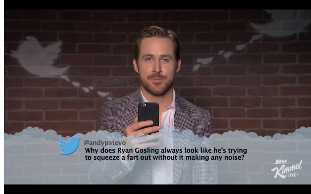話は変わるがこのライアンゴズリングかわいすぎ。自分のTwitterに書かれた悪口自分で読み上げる番組のやつ。