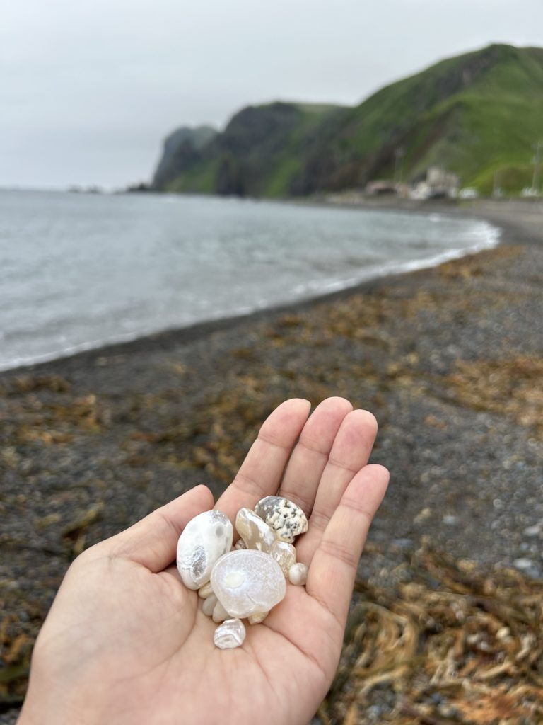 それからメノウ石がとれる浜辺が近くにあるから黙々と拾っていた。