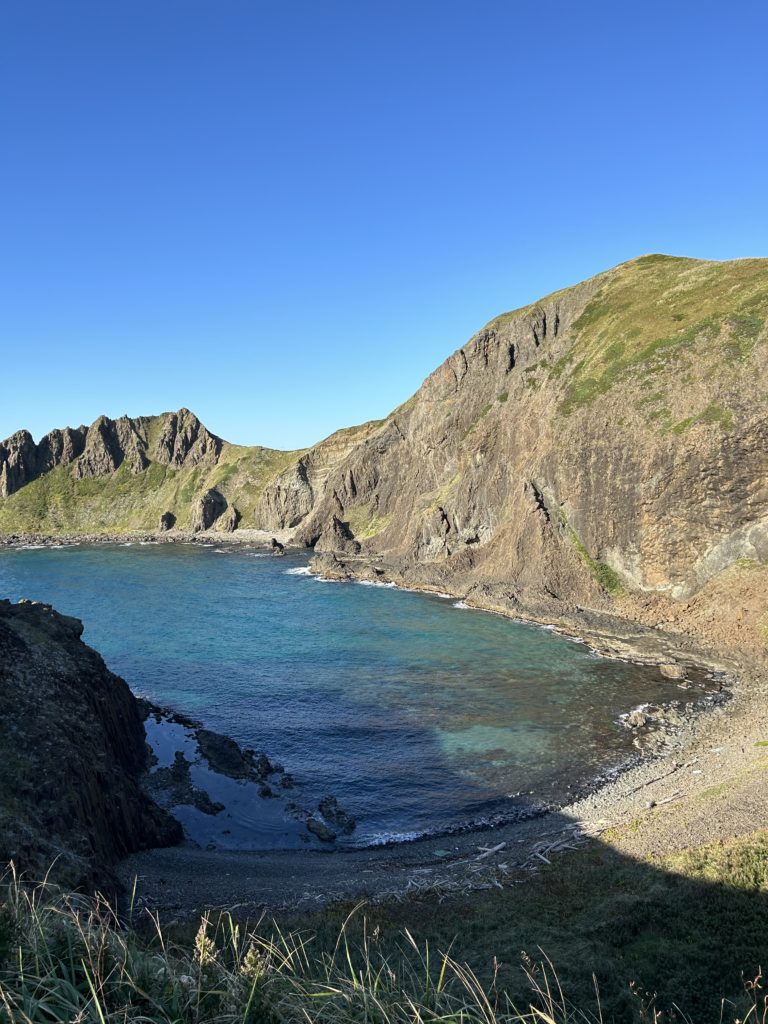 これは久々の休みに行った岬での写真。透明度の高い海。
